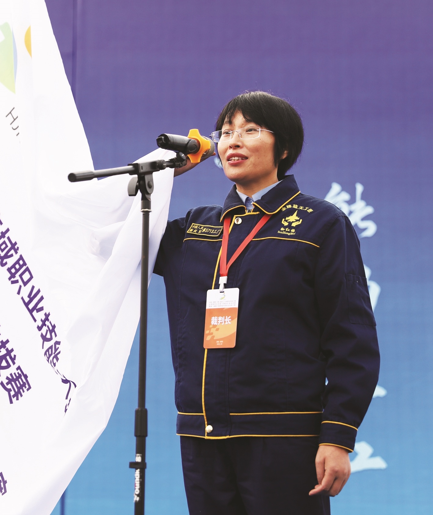 大赛总裁判长、大国工匠孙红梅代表全体裁判员宣誓。