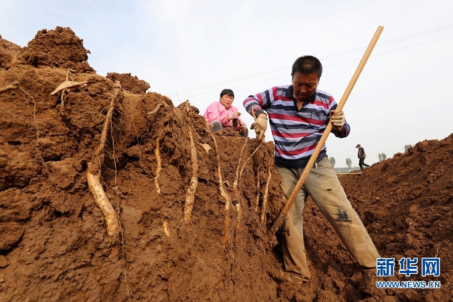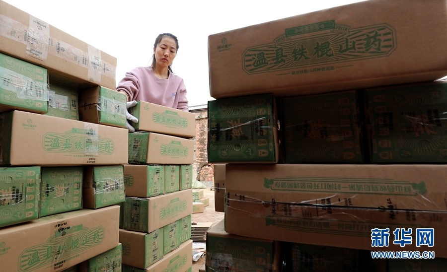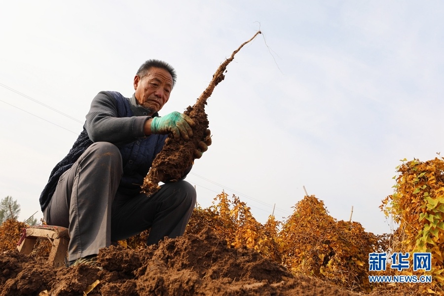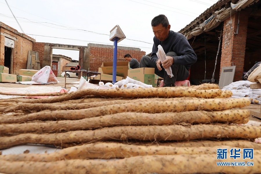 近年来,河南省焦作市温县积极引导农户因地制宜种植铁棍山药等“四大怀药”特色农作物,采取“公司+电子商务+基地+农户”等运作模式,通过农商对接、农企对接,拓宽销售渠道,助力农民增收致富。新华网发(徐宏星 摄)