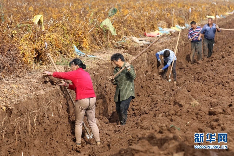 10月27日,河南省焦作市温县武德镇苏王村,农民正在收获铁棍山药。温县是铁棍山药的原产地,现种植铁棍山药3万亩,目前已进入开挖期,当地一派繁忙景象。