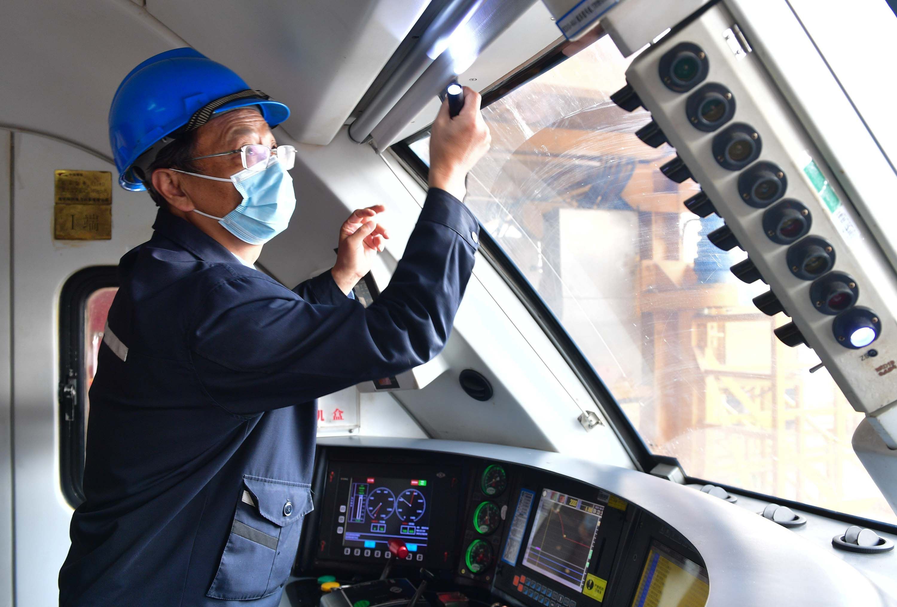 赵剑平向徒弟演示机车驾驶室检查流程。长江日报记者李永刚 摄