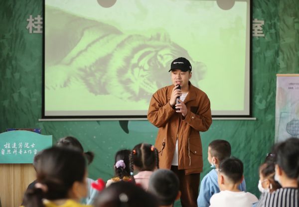 王圣凯正在分享东北虎科普知识。记者何晓刚 摄