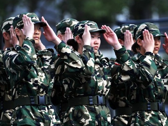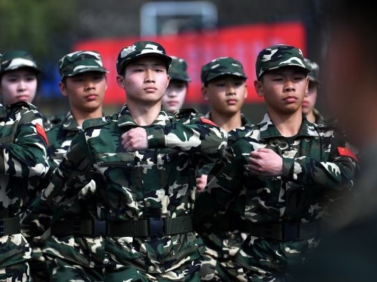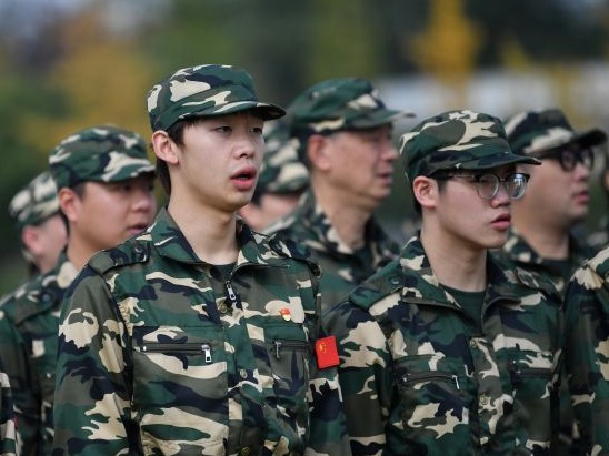 张子扬(左一)在军训中。