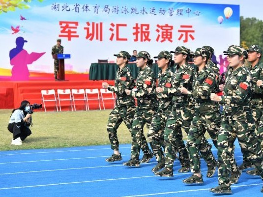 长江日报大武汉客户端讯(记者张琳)11月1日上午,省体育局游跳中心在省奥体中心进行了军训汇报演示。来自该中心的五支运动队共约90余人参加了队列行进、正步走等军训科目演示。其中包括了东京奥运会男人三米板跳水冠军王宗源、十四届全运会三块游泳金牌得主张子扬以及世界跳水冠军昌雅妮等人。