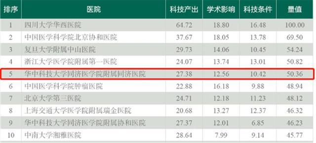 湖北日报讯(记者龙华、通讯员李韵熙、鲍捷)10月31日,2020年度中国医院科技量值(STEM)发布,华中科技大学同济医学院附属同济医院综合科技量值总分达50.36,排名位列全国第五、中南地区第一。据了解,该科技量值评价体系着眼于对我国新发展阶段医学机构提升发展质量的导引作用,着重体现科技创新水平与方向,旨在促进医学机构高质量发展,是对中国医学科研创新能力的最高水平评价。