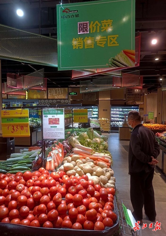 长江日报大武汉客户端11月1日讯(见习记者陈紫云)记者从武汉市商务局了解到,11月1日至15日期间,武汉市通过武商、中百、中商三大商超140家门店向市场投放限价菜。今天上午,记者走访商超名单中的部分门店,发现各家超市均为限价菜设立了售卖专区并安排专职售货员负责上货,确保随时满足消费者的购物需求,萝卜、白菜每斤重回1.9元,不少市民满载而归。