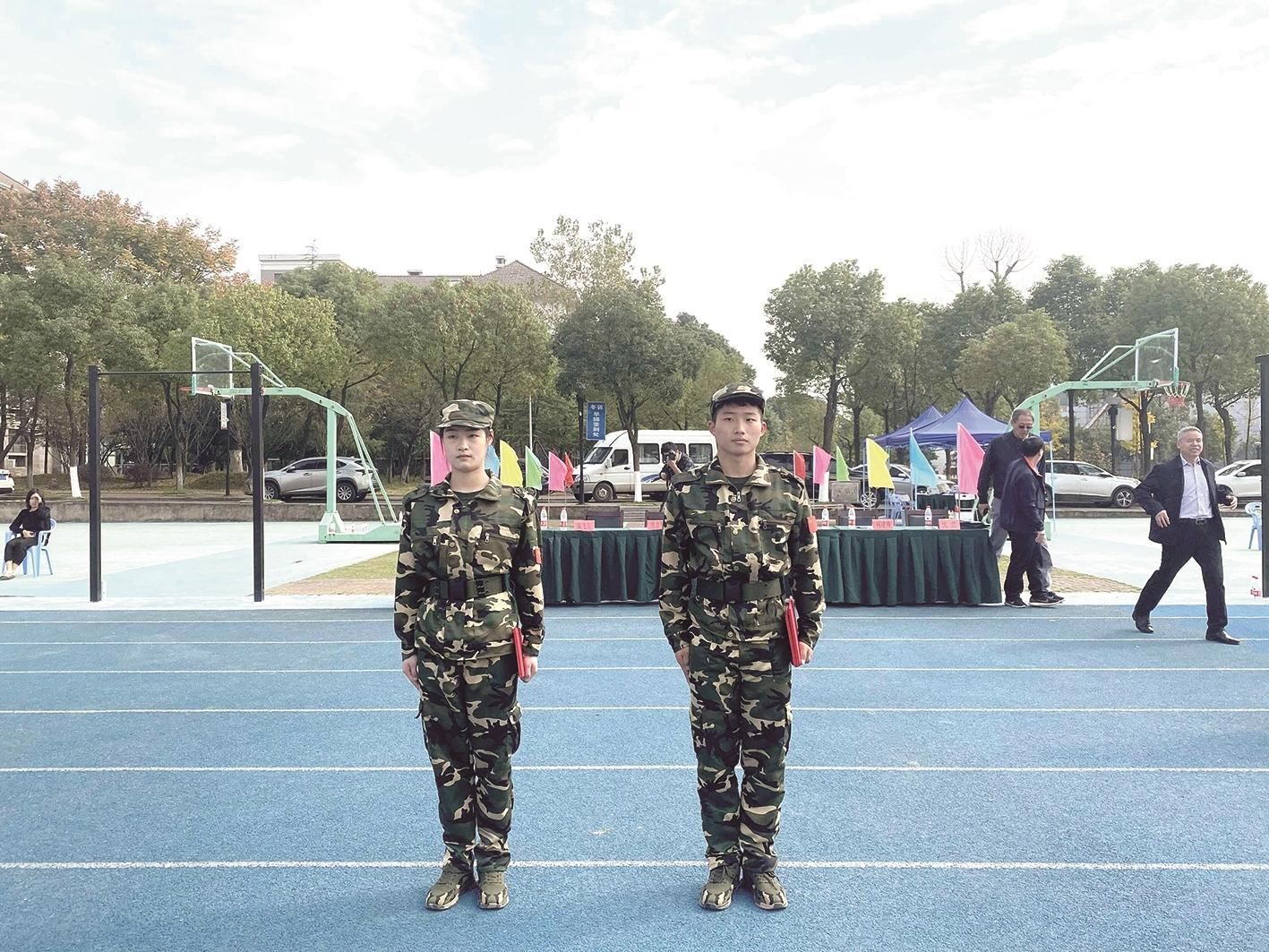 在进行军训汇报的队列当中,极目新闻记者发现了在2020东京奥运会跳水项目上夺得一金一银的奥运冠军王宗源,在西安全运会上有着“三金王”称号的张子扬和世界冠军昌雅妮。王宗源和昌雅妮两人同时获得“军训标兵”的称号。