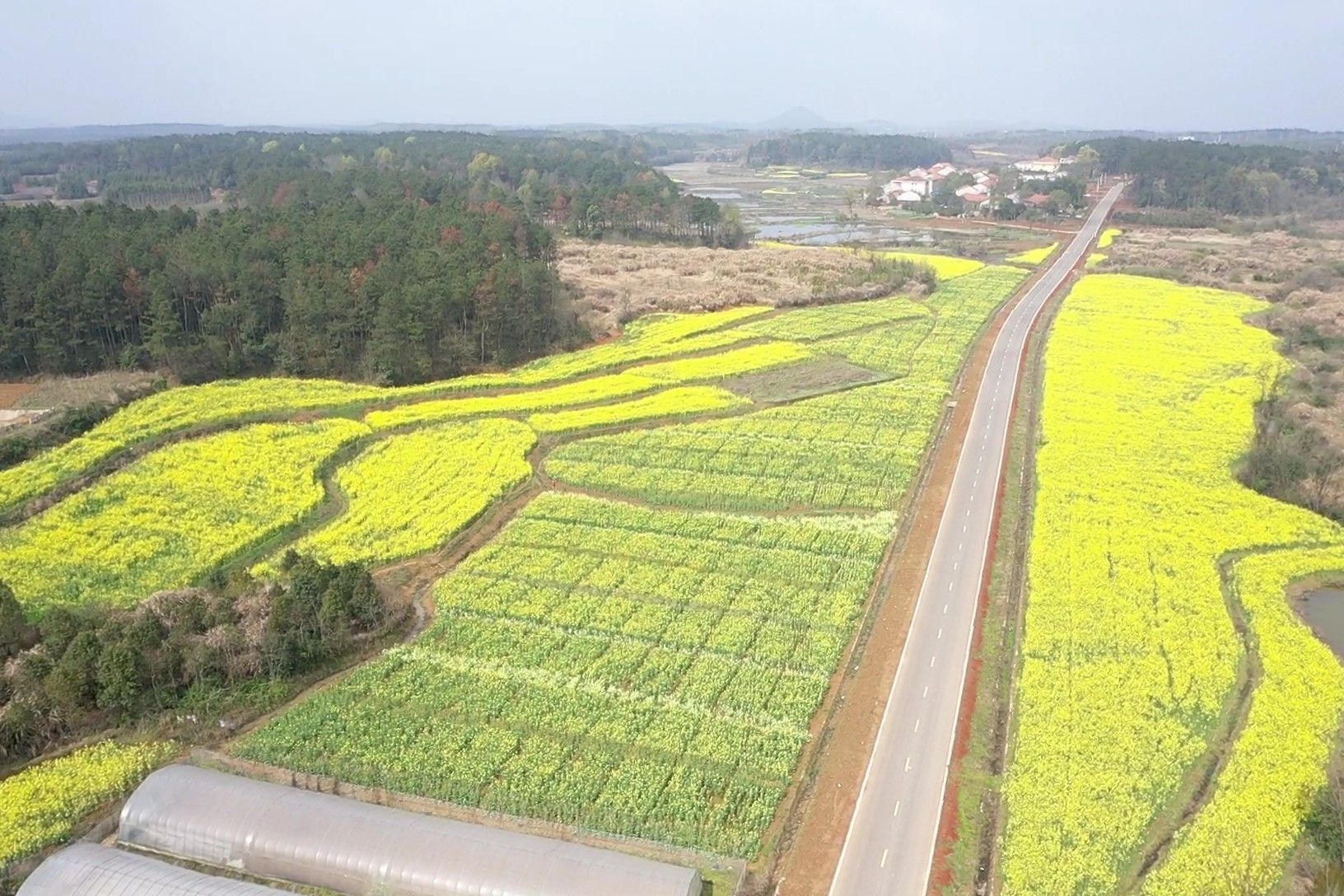 花海丛中,通往湖泗街海洋村的安洋公路。 通讯员吴进 供图