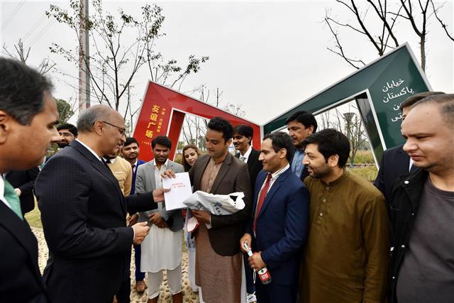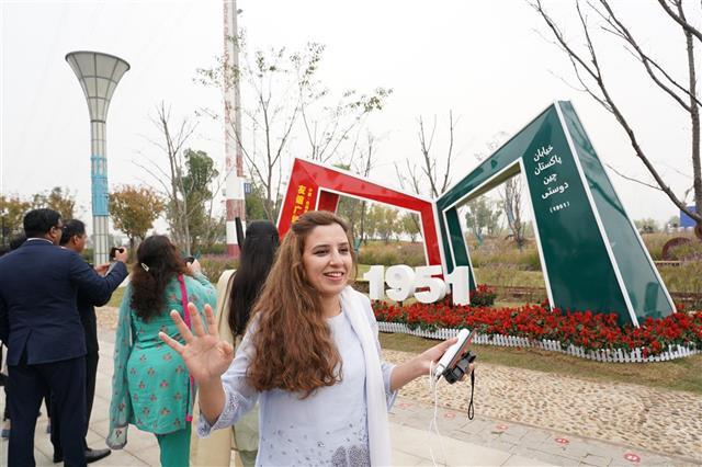 巴基斯坦驻华大使莫因·哈克一行人参观了“中巴友谊70年”雕塑、“中华鲟”雕塑、“捻角山羊”(巴基斯坦国兽)等主题雕塑,感受着中巴两国友谊的强烈联结。
