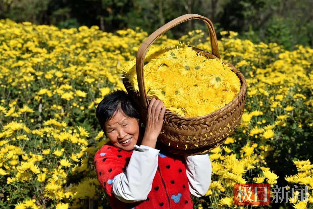 村民肩上扛着致富的菊花