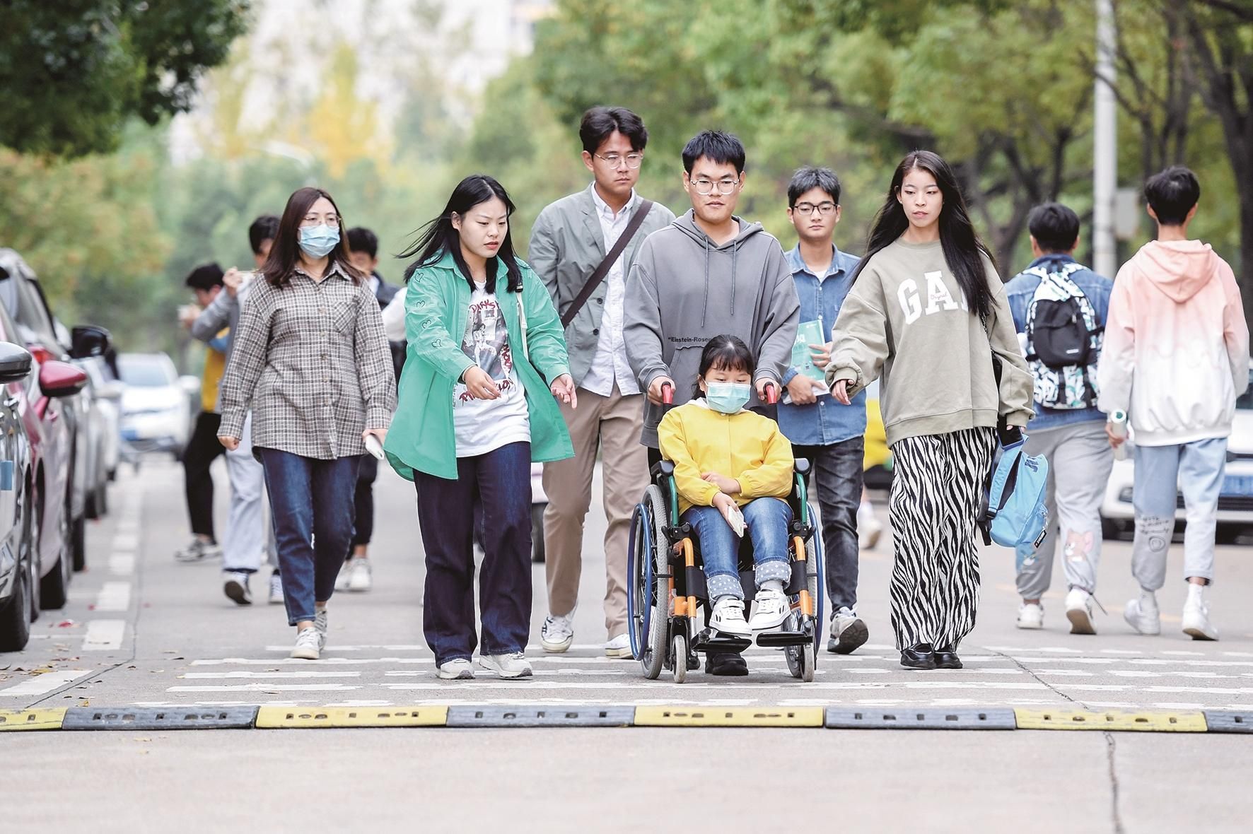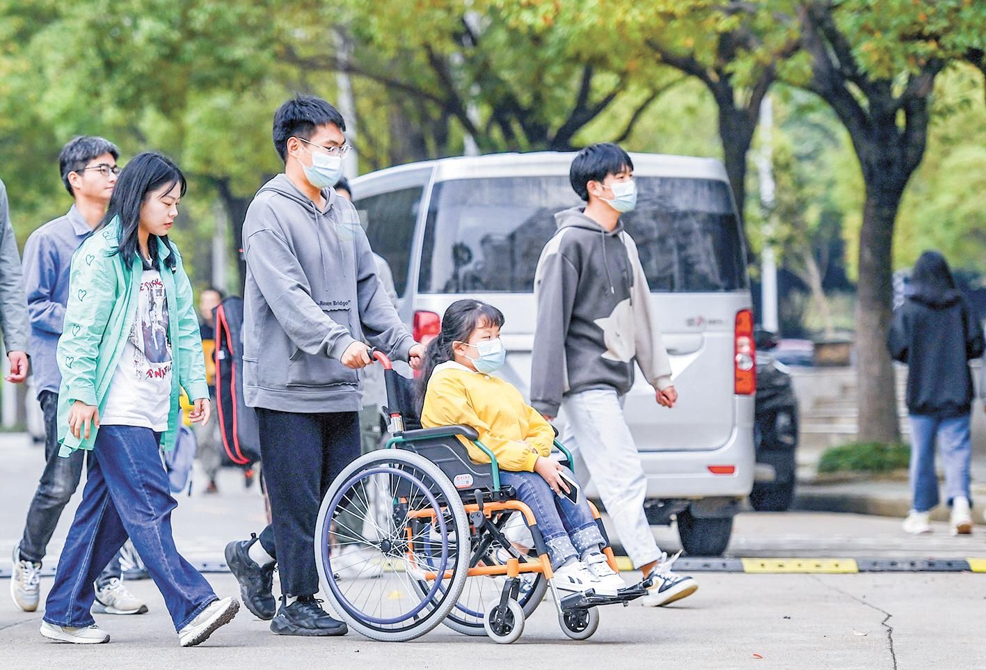 同学推着“瓷娃娃”汤紫妍去上课 楚天都市报极目新闻记者黄士峰摄