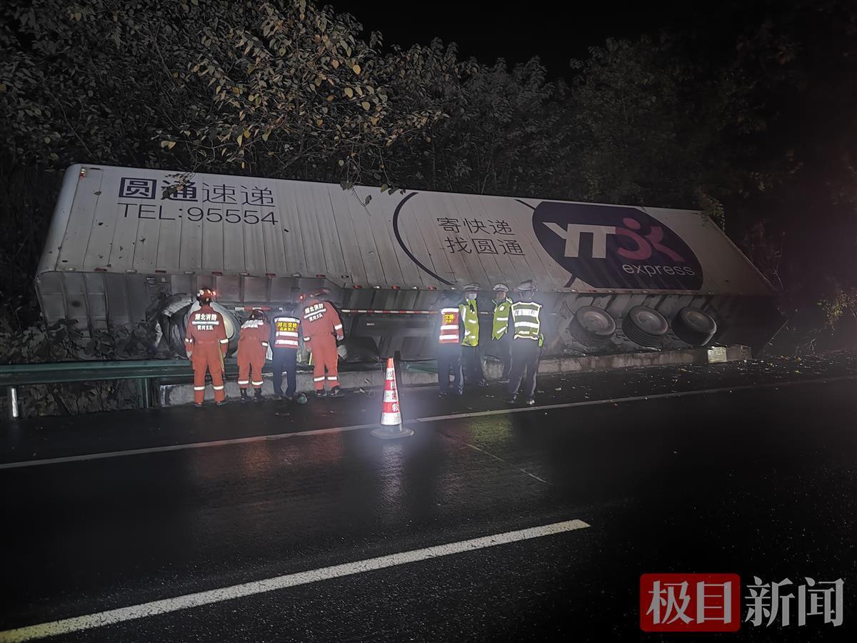 11月2日凌晨3时许,一辆往G50高速湖北省黄梅县方向行驶的圆通速递货车侧翻,车头悬空在三米多深的洞坑,司机受伤,情况紧急。蕲春县蕲春大道消防救援站接到报警,立即出动1车6人赶赴现场。