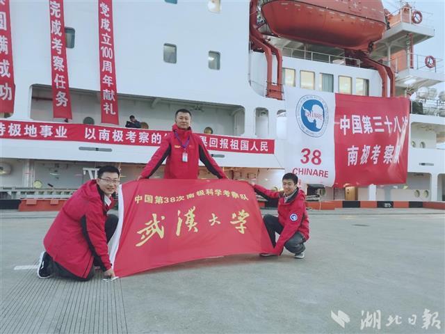 湖北日报讯(记者文俊 通讯员吴江龙)11月5日,由自然资源部组织的中国第38次南极科学考察队,从位于上海的中国极地考察国内基地码头出发,第一批队员搭乘雪龙号极地科学考察船,前往南极中山站等地执行科学考察任务。其中,武汉大学共派出3名队员,分别是中国南极测绘研究中心的张汝诚、陈帅均和生命科学学院的彭方。