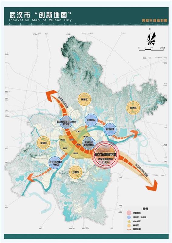 创新地图瞄准武汉市建设“国家科技创新中心”和“湖北东湖综合性国家科学中心”目标,整合全市科技创新要素信息,全景式呈现科技创新资源地图、科技创新规划地图、创产融合引导地图、科技创新服务集成地图四大板块。