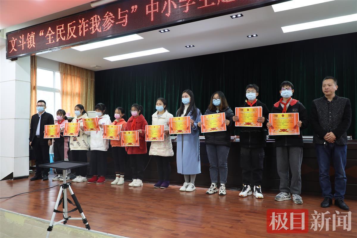据悉,此次活动由利川市文斗镇团委、文斗派出所和文斗镇中心学校联合举办,自9月底开始,收到来自12所中小学共计7000余份作品,评选出118份优秀参赛作品。颁奖仪式后,文斗派出所民警还现场为参会师生普及了反诈知识,提高反诈骗意识。
