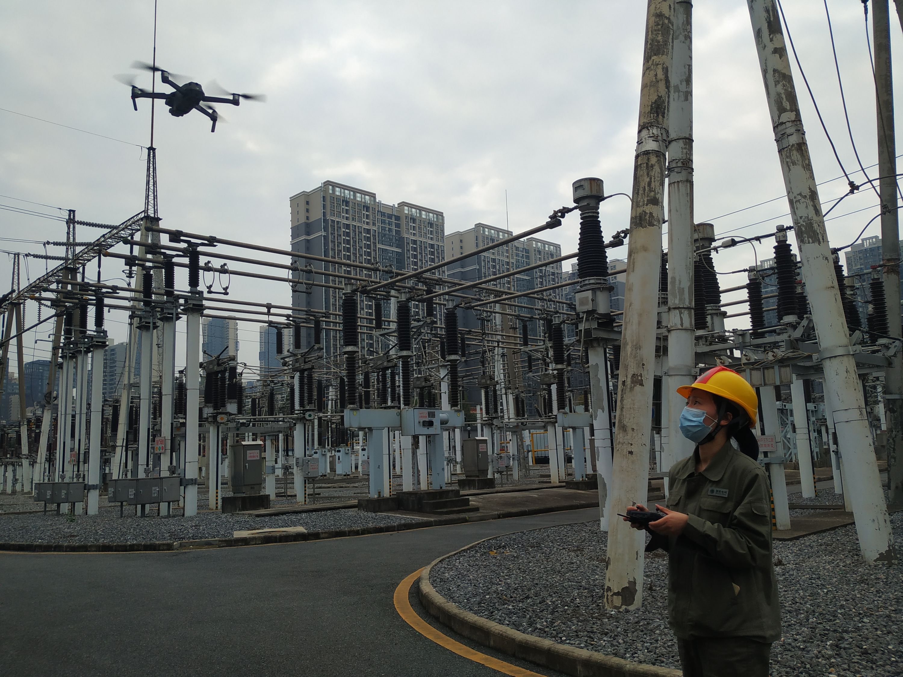 电力员工利用无人机对重要输电线路通道、变电站进行排查。 通讯员王欣 摄