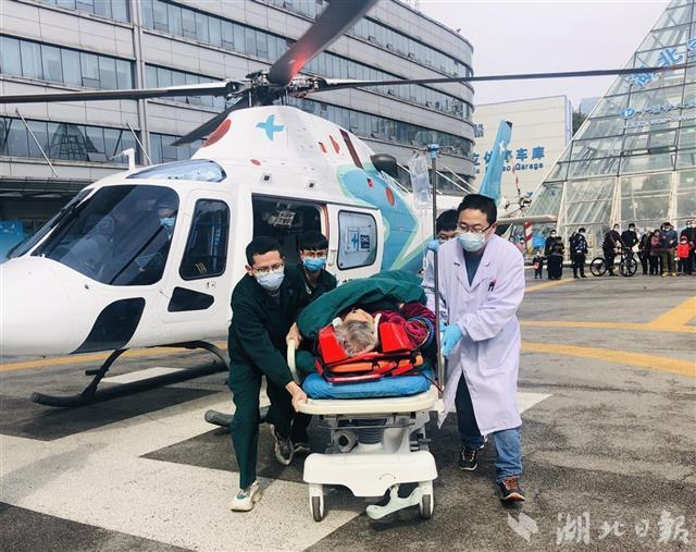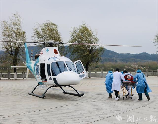 救援直升机10:22从十堰市人民医院起飞,10:51降落在谷城县粉水广场,11:03接到谷城县医院急救站转运的病人后返程。