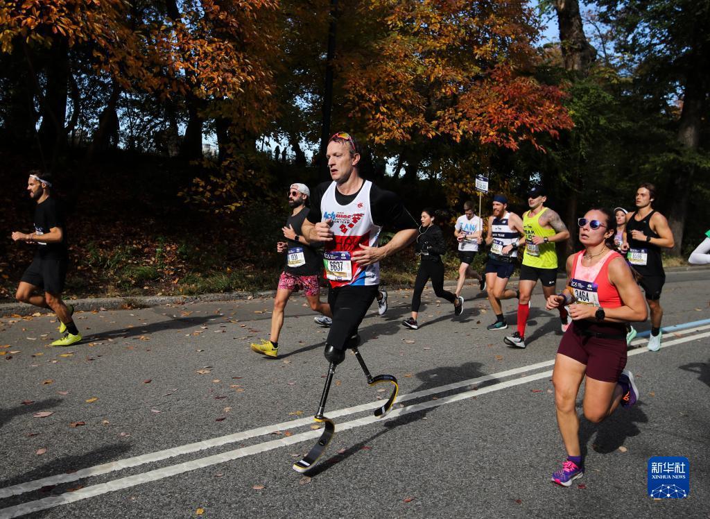 当日,2021纽约马拉松赛在美国纽约举行,共有来自世界各地的约3万名选手参赛。