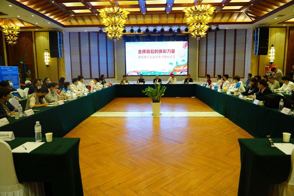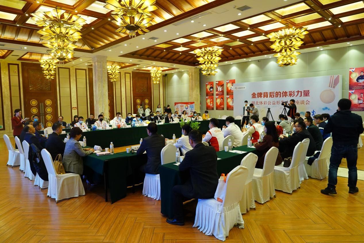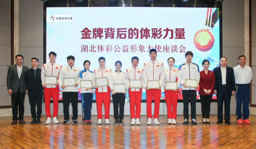 11月4日晚,由湖北省体育彩票管理中心主办的“金牌背后的体彩力量”湖北体彩公益形象大使座谈会在武汉举行,湖北省体育局游泳跳水运动管理中心、重竞技运动管理中心负责人,受聘担任湖北体彩公益形象大使的9位奥运会和全运会冠军运动员,省文联副主席、省曲艺家协会主席、国家一级演员、著名喜剧表演艺术家陆鸣等嘉宾,以及国家和省级媒体记者、优秀体彩代销者和全省体彩系统中层以上管理人员代表,共60余人参加座谈会。