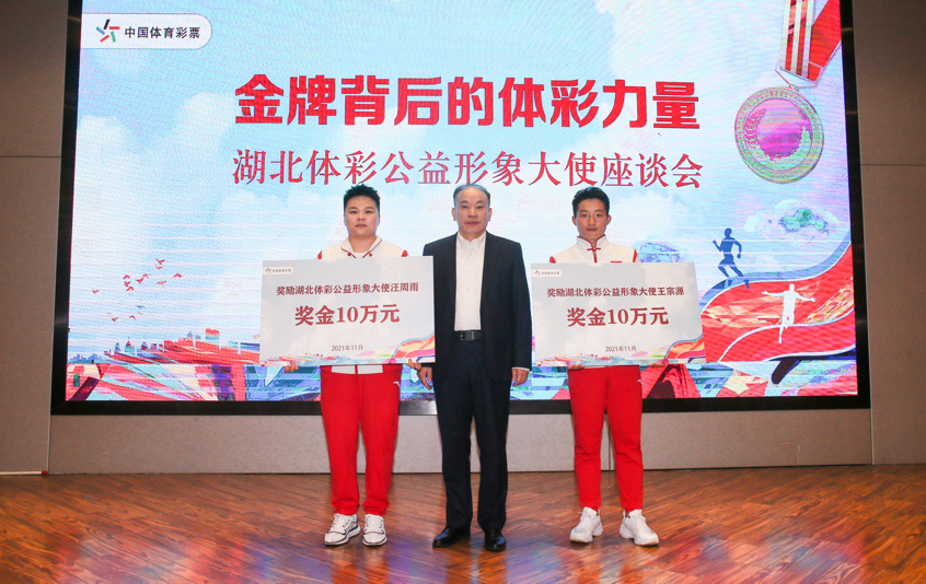 东京奥运会举重女子87公斤级冠军、第十四届全运会举重冠军、已经担任了两年湖北体彩公益形象大使的汪周雨在发言中表示:“这两年来我对体育彩票有了深刻的认识,体彩公益金是我们勇夺金牌的坚强后盾。体彩公益金深入到了我们训练生活的方方面面,不仅一直支撑着奥运争光计划,还为我们提供更好的训练和备战参赛条件,可以说各个方面都离不开体彩公益金的支持。体彩公益金除了给我们运动员提供强有力的保障,更是给予我们无畏前行的力量。今后我要认真履行湖北体彩公益形象大使的职责,为展现体彩公益形象和提升品牌影响力,做出自己积极的贡献。”