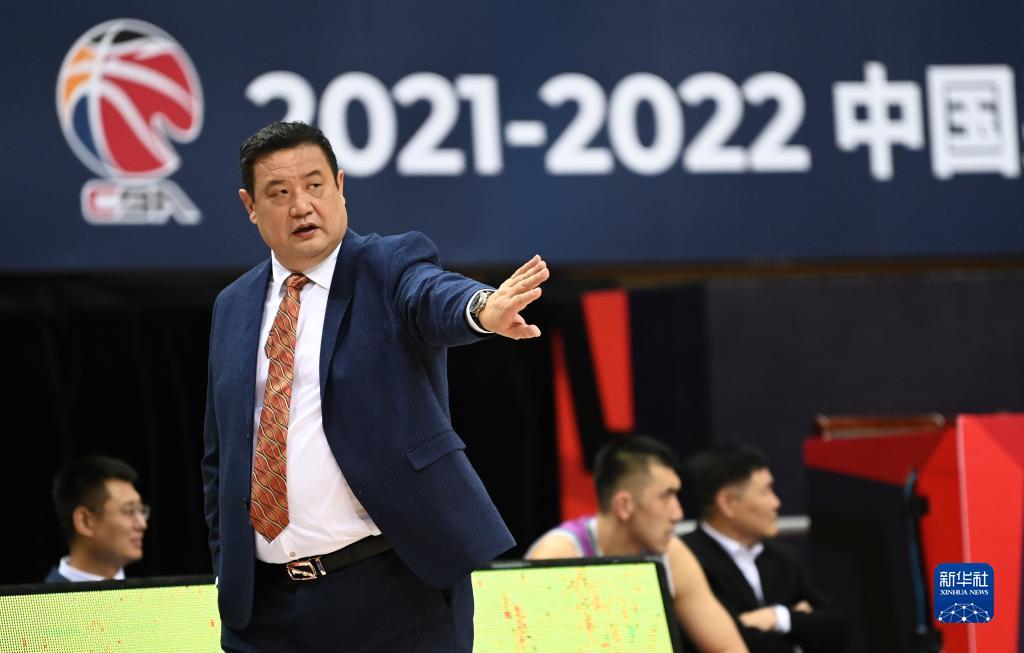 11月8日,山东高速队主教练徐长锁在场边指挥。新华社记者 孙凡越 摄