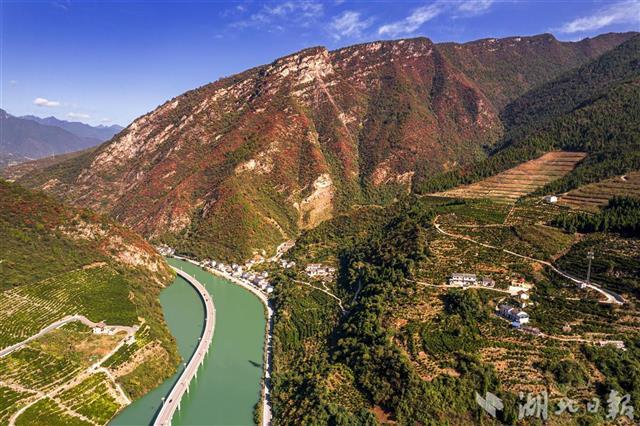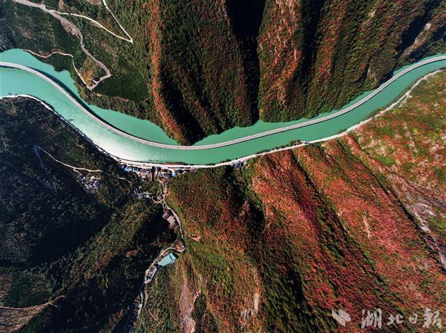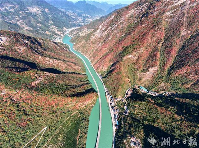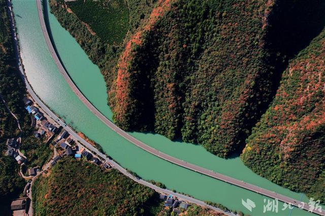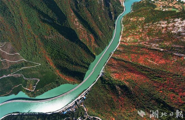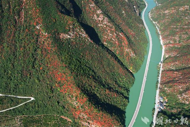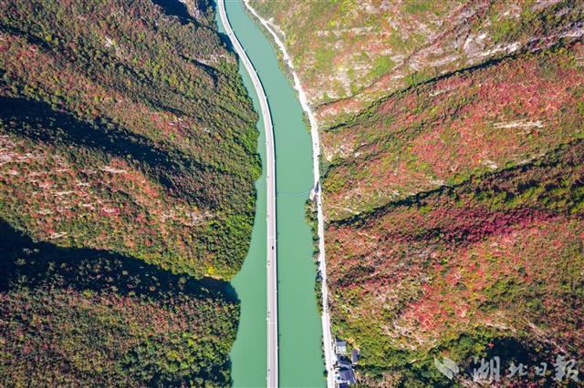 11月8日,初冬的暖阳高照,兴山县满山红叶似彩霞,长江支流香溪河中蜿蜒的古昭公路两旁山岚层林尽染,吸引了不少游客慕名而来观赏昭君故里的香溪秋色。兴山县地处三峡库区,长江西陵峡北侧,古昭公路全长10.9公里,为了避免开山毁林,当地将其中4.4公里建在峡谷溪流中,故得名“水上公路”,也被游客称为“最美水上公路”。(湖北日报全媒记者 刘曙松 通讯员 邹远景 摄)
