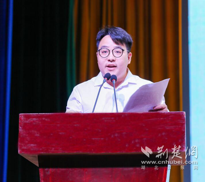 武汉生物工程学院2019届学生毕业典礼上,刘磊磊作为优秀校友代表受邀发言。通讯员供图