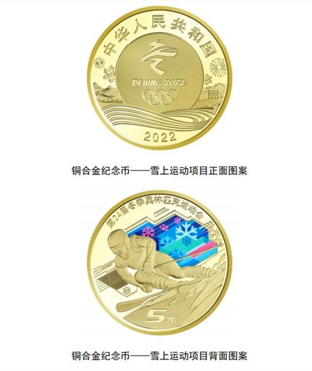 值得一提的是,此套冬奥币中的其中1枚局部为彩色图案,是我国首套彩色普通纪念币。根据央行公告,本次发行的冬奥币一套2枚,包括冰上运动项目和雪上运动项目各1枚,单枚面额为5元,发行数量2亿套。该套纪念币正面主景图案均为第24届冬季奥林匹克运动会会徽,辅以图案化的北京冬奥会比赛场馆、长城、雪山等元素,币面上方刊“中华人民共和国”国名,下方刊年号“2022”字样。冰上运动项目背面主景图案为短道速滑运动员形象,背景为抽象化的线条等组合元素,并刊“第24届冬季奥林匹克运动会”字样及面额。雪上运动项目背面主景图案为高山滑雪运动员形象,背景图案为高山、雪花,局部为彩色图案,并刊“第24届冬季奥林匹克运动会”字样及面额。