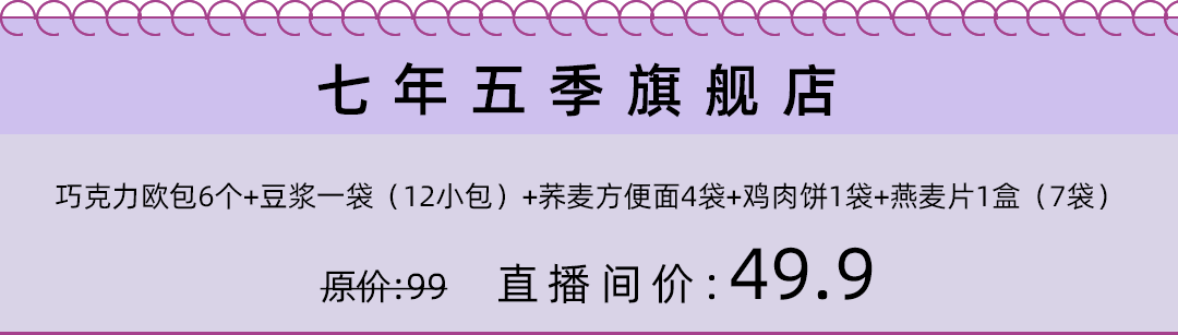 巧克力欧包6个+豆浆一袋(12小包)+荞麦方便面4袋+鸡肉饼1袋+燕麦片1盒(7袋)