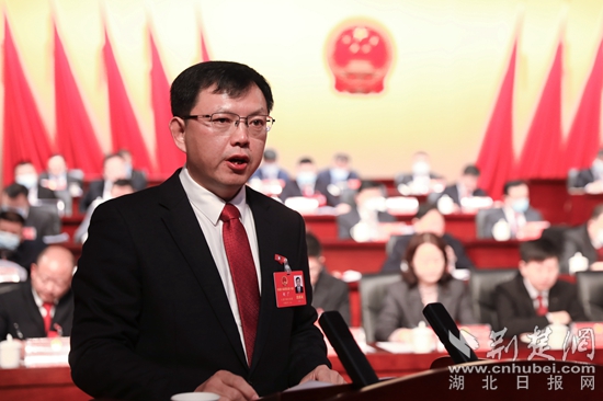 红安县委副书记、代理县长胡广作《政府工作报告》。汪冠 摄