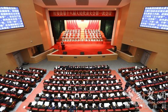 红安县第十八届人民代表大会第一次会议召开。汪冠 摄