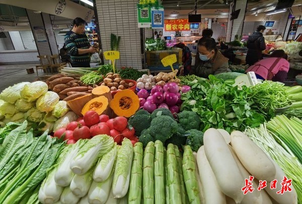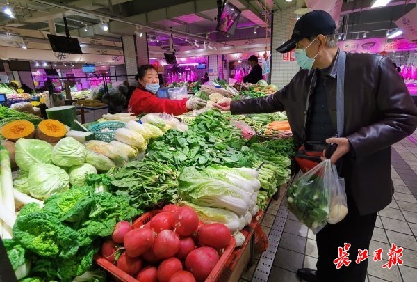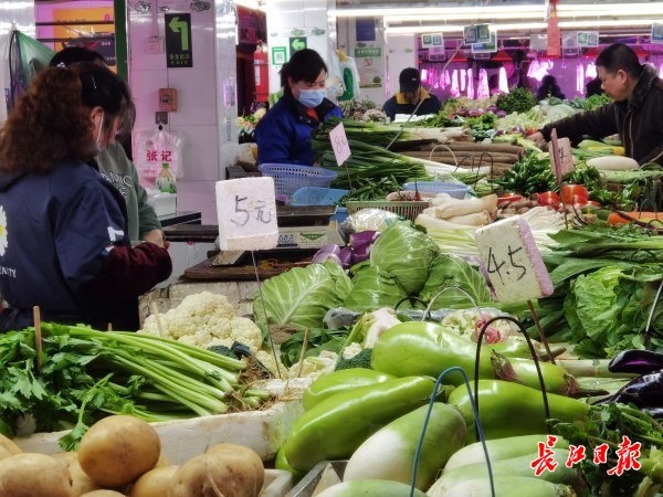 长江日报大武汉客户端11月10日讯 11月10日,长江日报记者在宝丰街和武胜西街集贸市场看到,各种蔬菜品种丰富、价格实惠。目前蔬菜价格平稳,未出现较大幅度波动,市民悠闲地逛着菜市场,按需购买。