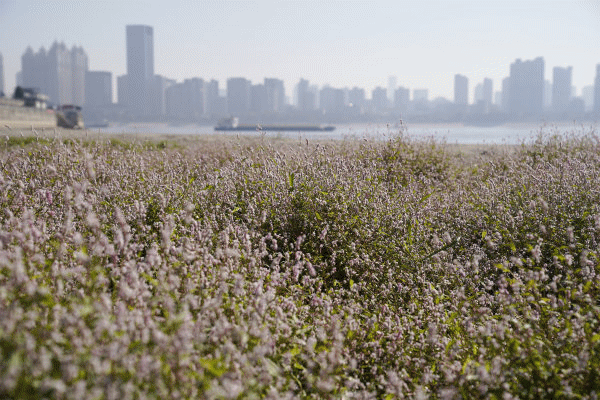 大江两岸,汉阳江滩和龙王庙的“闲散人”有遛娃的、有自拍的,还有无邪的孩子玩着洁白细腻的江沙。