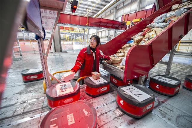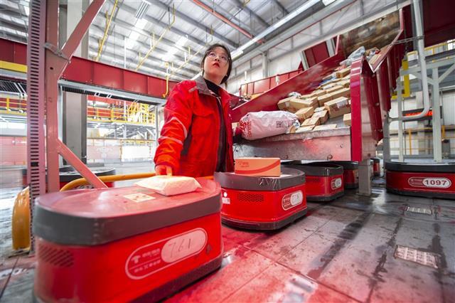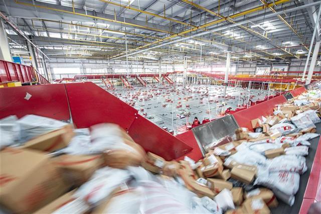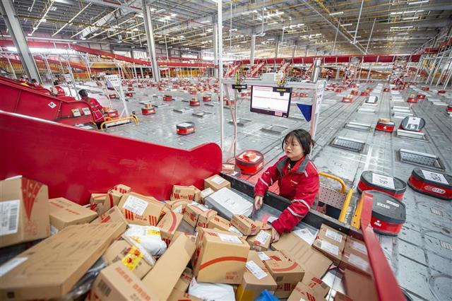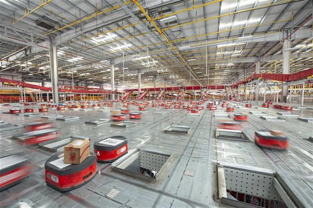 11月10日,京东物流武汉亚洲一号智能物流园区内,350余台智能分拣机器人正在分拣货物。为应对即将到来的双十一快递分拣高峰,园区工作人员提前十天对所有设备进行了全面维修养护,确保所有设备在双十一期间顺畅运行。此外,分拣中心早在10月20日—30日就提前将部分预售订单运送到离客户最近的站点,让客户更快时间收到货物。据预测该园区11月11日—13日将达到分拣量最高峰,是平日的4倍左右。(湖北日报全媒记者 何宇欣 通讯员 常燕 摄)