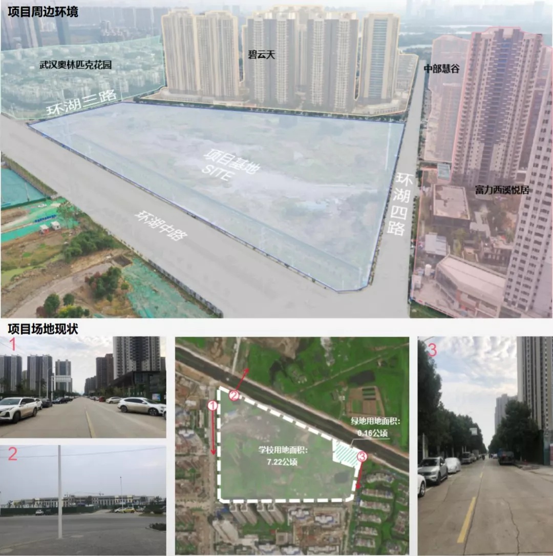 征集信息显示,东西湖区金银湖街道环湖中路规划学校,位于府河与金银湖之间。学校北临环湖中路,南临奥林路,西临环湖四路。项目用地面积为7.38公顷,其中学校用地约7.22公顷,街边绿地约0.16公顷。