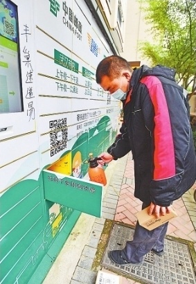 记者现场看到,该网点内忙碌的五六人均戴着口罩。快递小哥徐伯华负责分发跃进家园居民的快递,装满车后,他前往小区内的快递柜进行包裹分发。他介绍,快递柜能减少和客户接触,更有助于防疫需要。