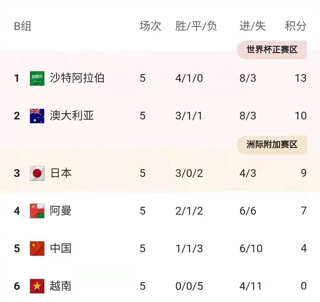 的确,翻看国足世界杯出线形势,12强赛五轮过后,国足积4分排在B组第五,落后第三的日本5分,落后第二的澳大利亚6分。下周二晚23:00,国足还将对阵澳大利亚,要想保留最后一丝出线希望,国足需要奇迹……