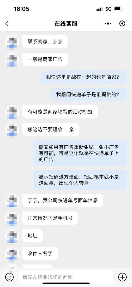 某快递企业客服回应称,“我们公司快递面单信息正常情况下是手机号、地址、收件人和单号,其余信息不用理会。”