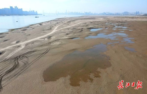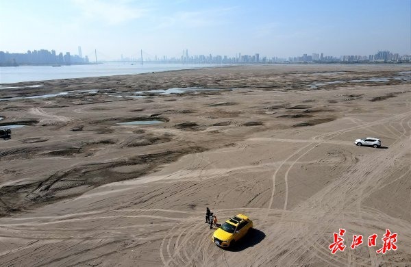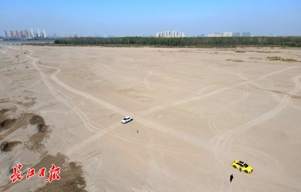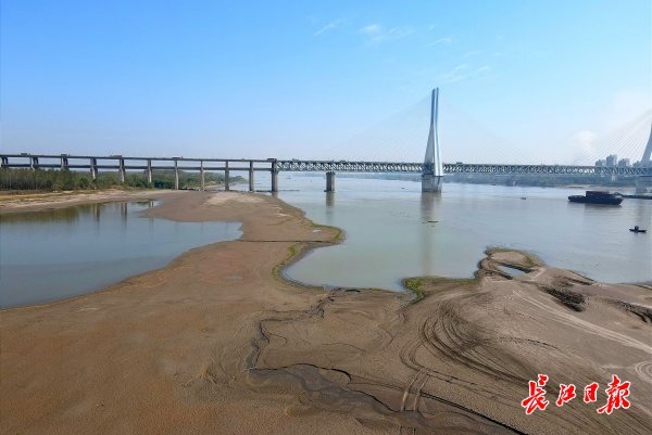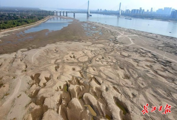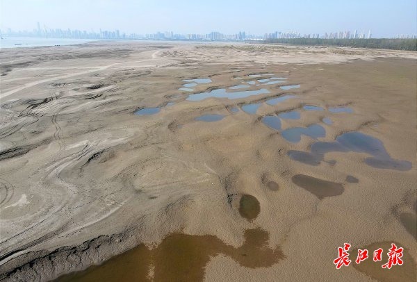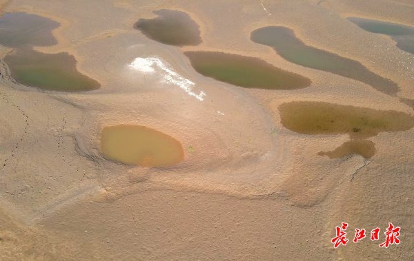 长江水位退,沙洲现奇景