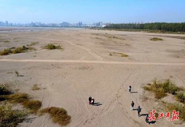 11月12日,长江武汉段的天兴洲露出大片沙滩,形成大大小小的沙丘,分布在水岸,呈现出秋末冬初里奇特的自然景观。