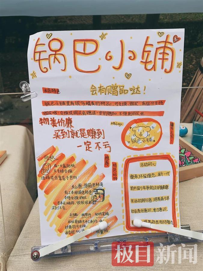 此前,孩子们就开始为此次公益市集做准备:绞尽脑汁起个响亮的摊位名字、用废旧物品制作店牌、设计独特的LOGO、整理自己的闲置物品并给他们“定价”……