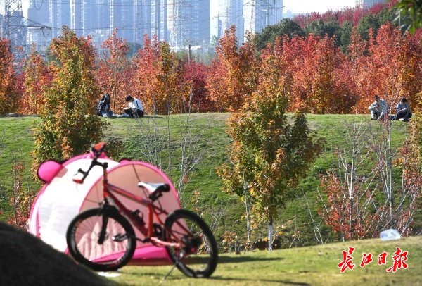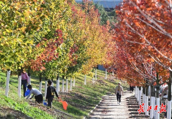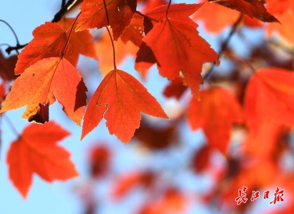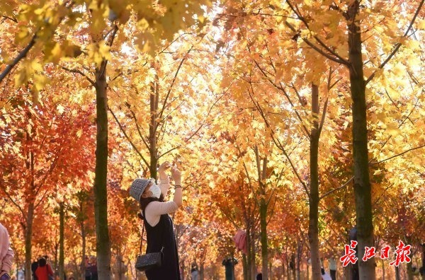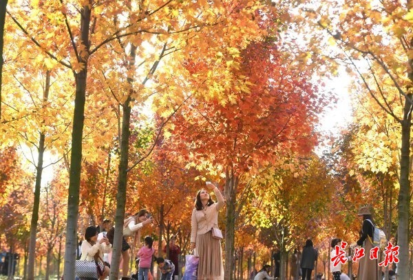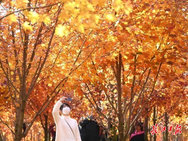 11月14日,文华学院层林尽染,数千棵红枫树的叶子正红火起来,形成一道靓丽的“枫”景线,人们漫步红枫林中尽享冬日最绚丽色彩的“黄金时代”。