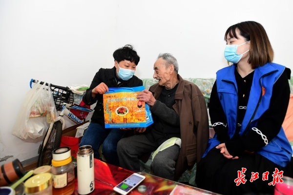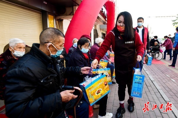 工作人员将丸子等送给老年居民。 长江日报记者史伟 摄
