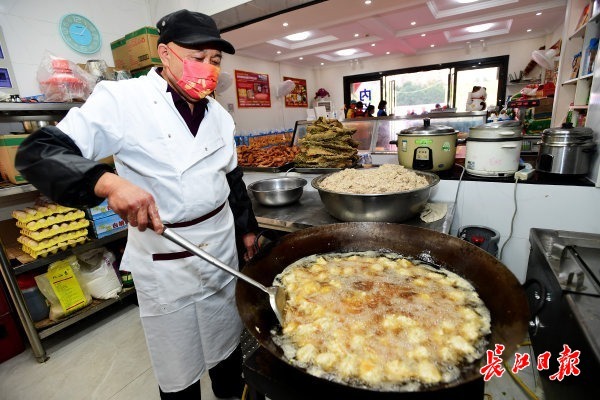 11月15日,李辉斌在炸丸子。 长江日报记者史伟 摄