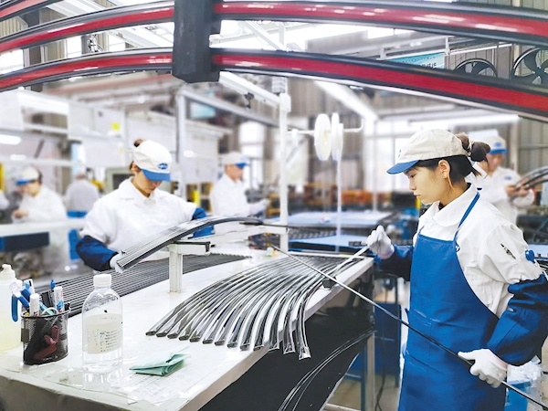 位于咸安区的敏实汽车零部件有限公司,工作人员抓紧生产。
