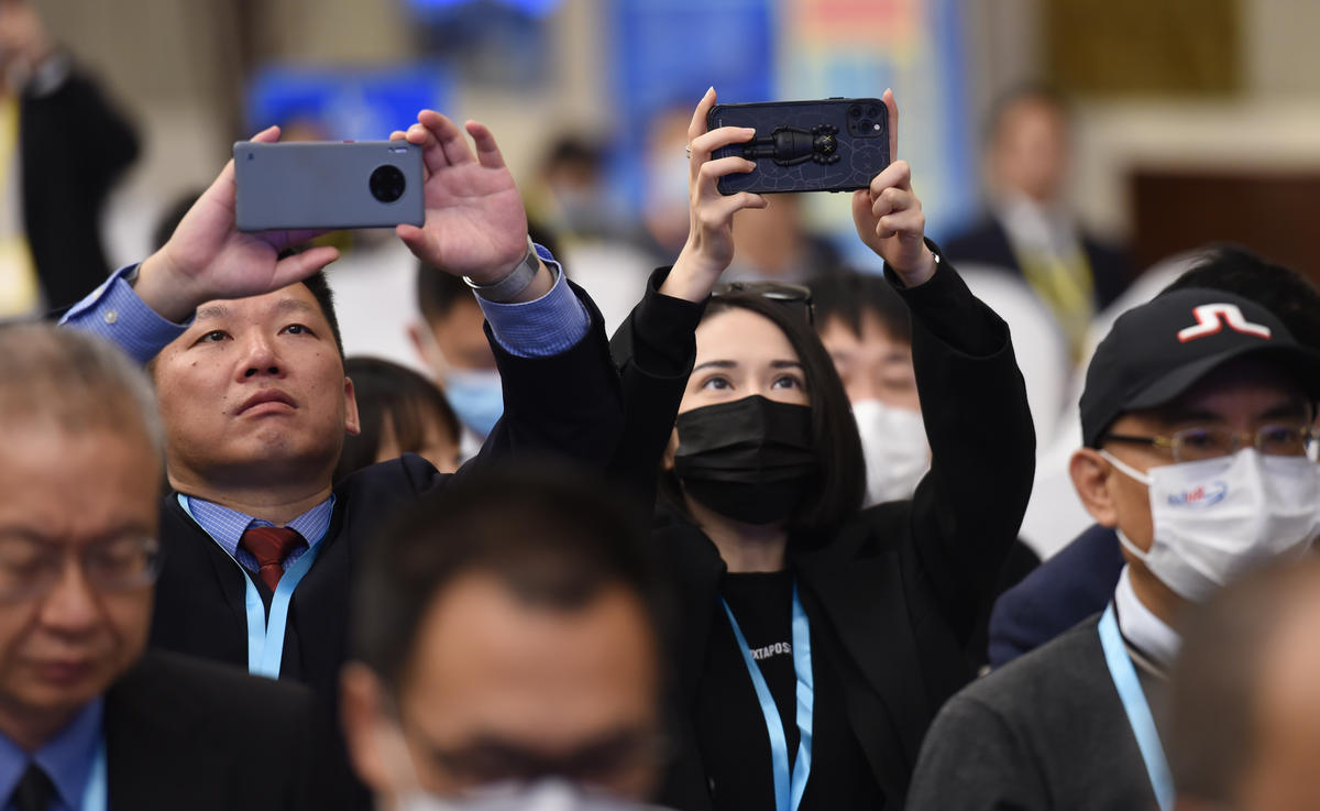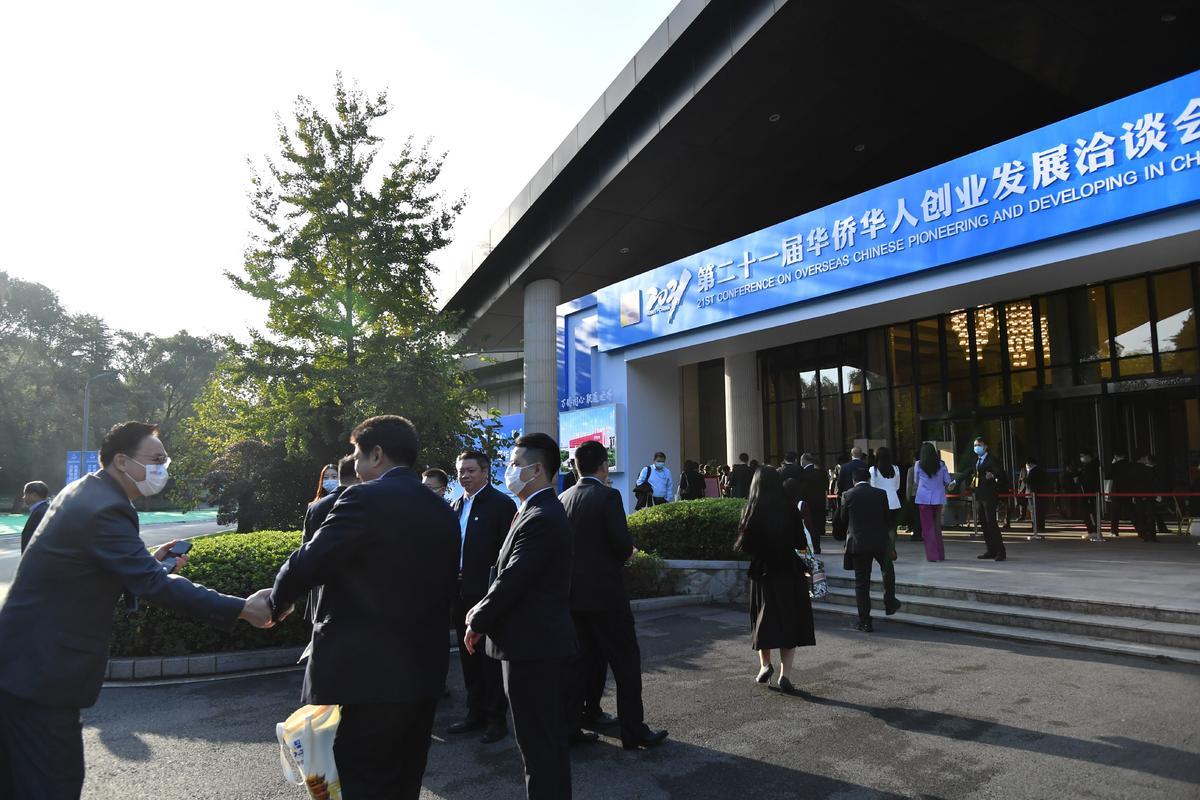 11月16日,第二十一届华侨华人创业发展洽谈会在武汉东湖国际会议中心开幕。来自海内外的华侨华人代表参会。图为参会代表们到达开幕式会场外。