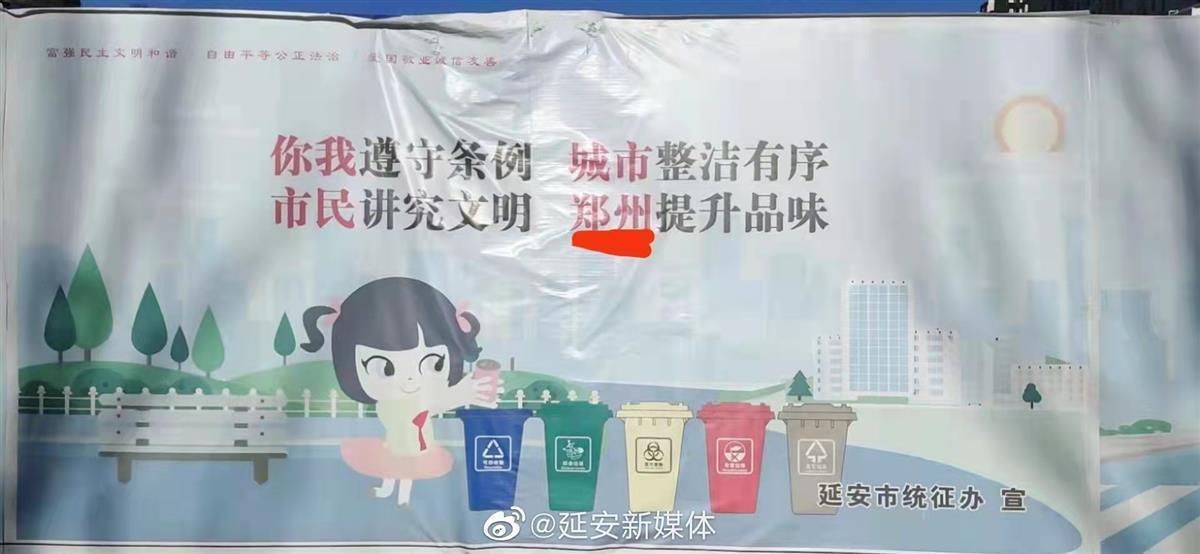 近日,陕西延安有网友爆料称,该市挂出“共建文明郑州”“郑州提升品位”等多幅标语。明明是陕西延安,为何宣传的是郑州,网友对此感到不解。