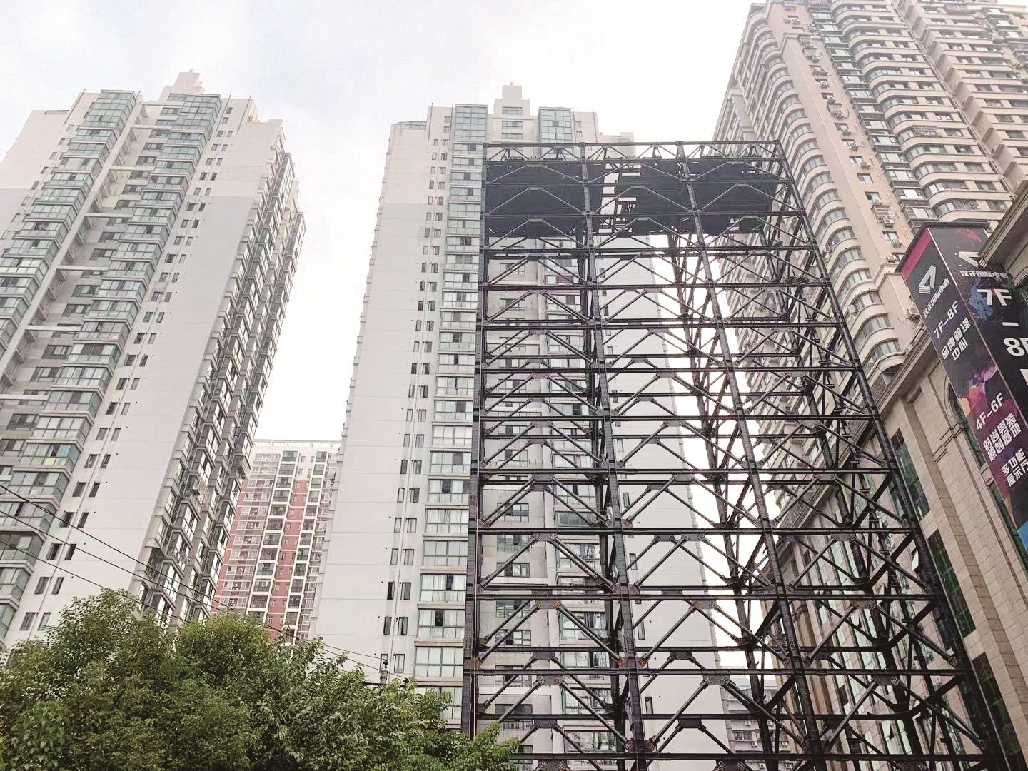 去年,开发商将立体停车库拆除后,并于今年6月开始重建。新修建的立体车库建到超过6层后,业主们发现不对劲,马上向有关部门反映。开发商随后张贴出一份通告显示,新修建的立体车库是垂直升降车库,可提供停车泊位150个,高度为49.9米。