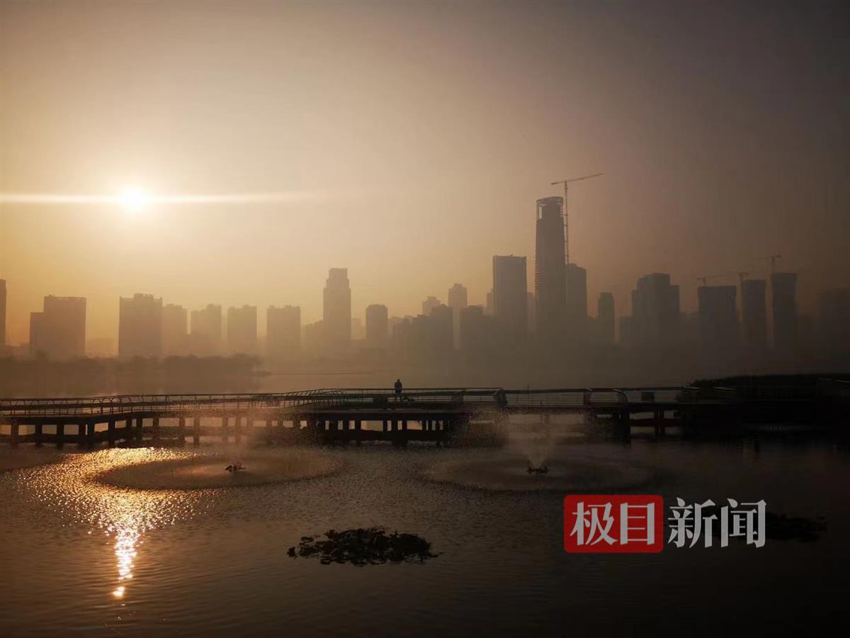 清晨7时许,市民万先生在沙湖公园散步,晨光和雾气交织的光影特别迷人。