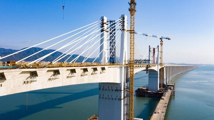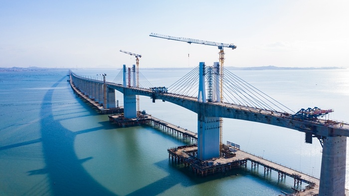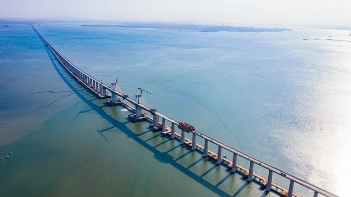 湄洲湾大桥是我国首条跨海高铁重点控制性工程跨海大桥,大桥长14.7公里,海域施工长10.8公里,主桥为预应力混凝土连续刚构矮塔斜拉桥,主跨180米。大桥合龙之后,将进行无砟轨道施工,也标志着福厦高铁关键控制性节点顺利打通,“乘坐高铁看海”的愿望即将实现。