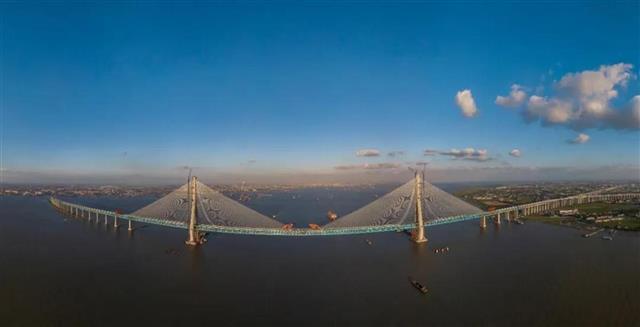 在大湾区,55公里的港珠澳大桥,成为世界最长跨海大桥;在江苏,主跨1092米的沪苏通长江公铁大桥,刷新世界公铁两用斜拉桥跨度纪录。同样以1092米主跨,五峰山长江大桥成为世界首座高速铁路桥悬索桥;在湖北,主跨1700米的武汉杨泗港长江大桥一跨过江,成为世界最大跨度双层悬索桥。